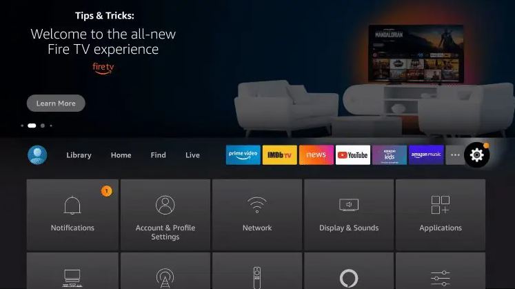1. Hover over the settings icon and click My Fire TV or Device & Software.