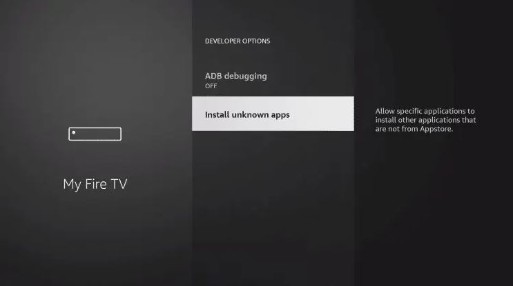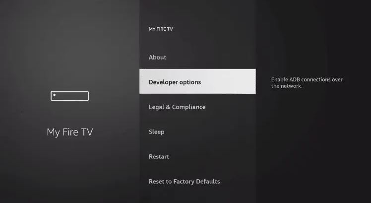 4. Click the back button on your remote and you will notice Developer Options is now showing within My Fire TV