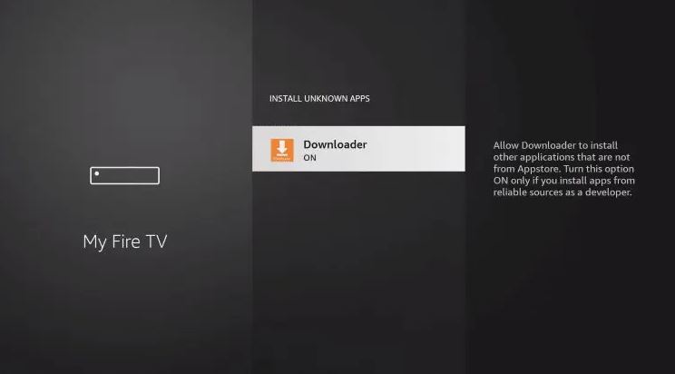 6. Find the Downloader app and click it, to show ON.