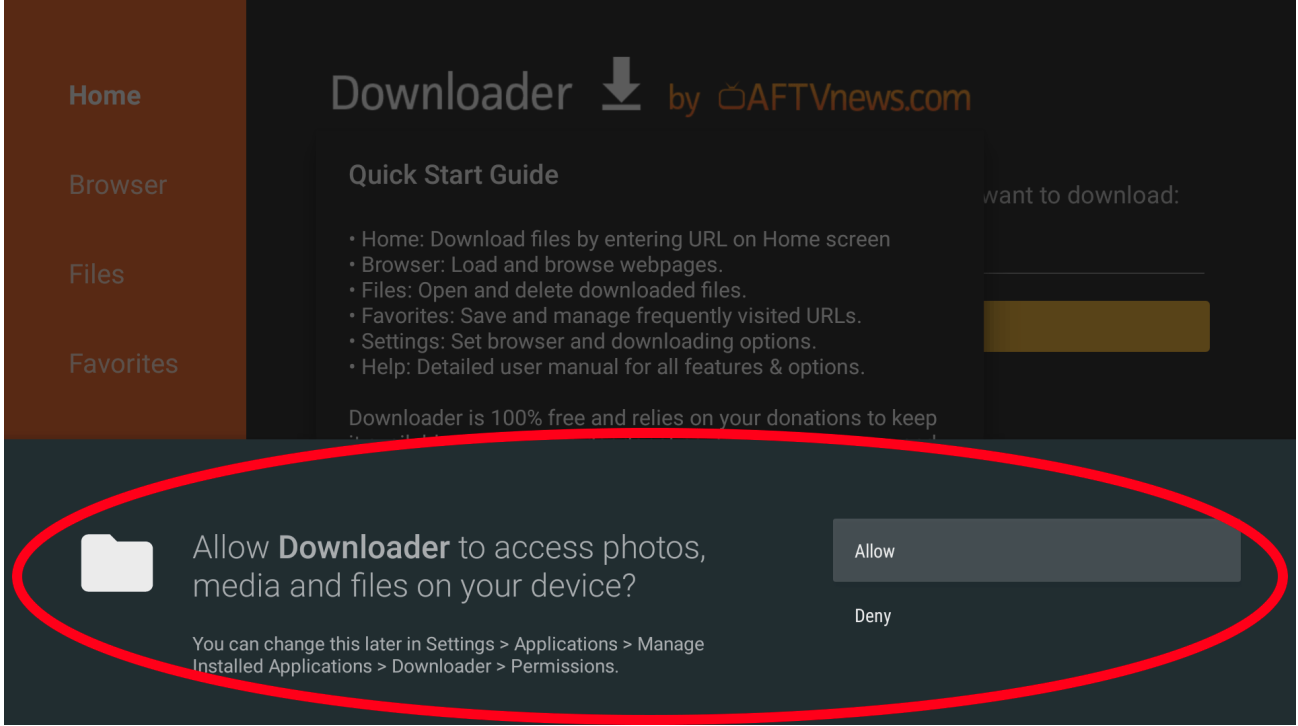 Allow Permissions when first opening Downloader.
