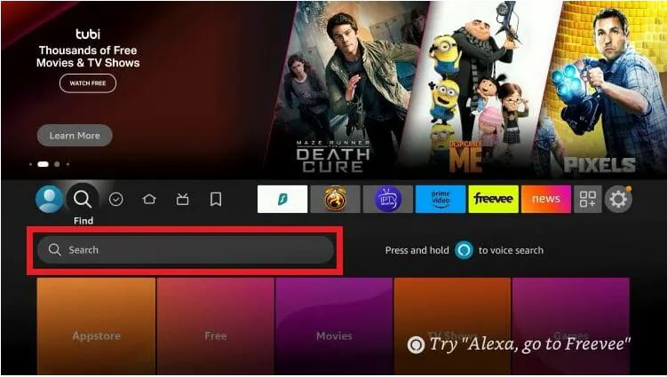 1. From the home screen of your device, hover over the Find button and then click the Search box.